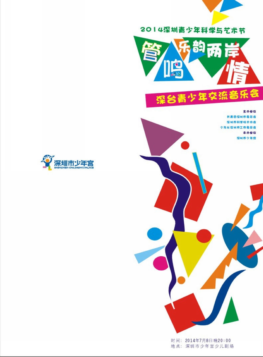 由团市委、市科协、市少工委联合主办,市少年宫承办的 “2014深圳青少年科学与艺术节”活动自六一节期间启动以来,已连续推出了各类青少年公益活动近20项,深受广大青少年欢迎。暑期将至,“科艺节”又为青少年朋友们准备了一场公益艺术大餐——“管鸣乐韵两岸情”深台青少年管乐交流音乐会将于7月8日晚20:00在少年宫剧场隆重上演。此次演出由来自深圳与台湾的3支青少年管乐团队联袂奉献。