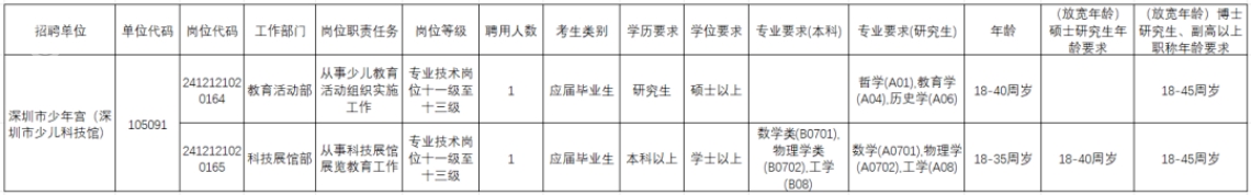 根据《广东省事业单位公开招聘人员办法》(粤府令第301号),省委组织部、省人力资源社会保障厅决定集中开展2024年全省事业单位公开招聘高校毕业生工作,共青团深圳市委员会直属事业单位深圳市少年宫(深圳市少儿科技馆)面向社会公开招聘事业编制工作人员2名。