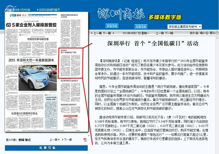 〖深圳商报〗深圳举行首个“全国低碳日”活动
