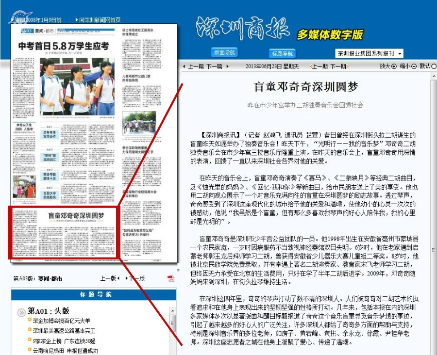 〖深圳商报〗盲童邓奇奇深圳圆梦