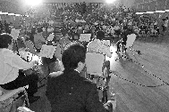 Deng at the concert, on stage at far right. Photos by Sun Yuchen
