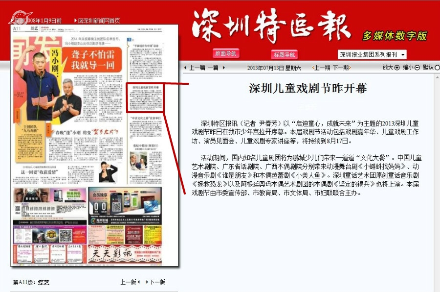 〖深圳特区报〗深圳儿童戏剧节昨开幕