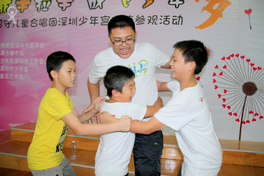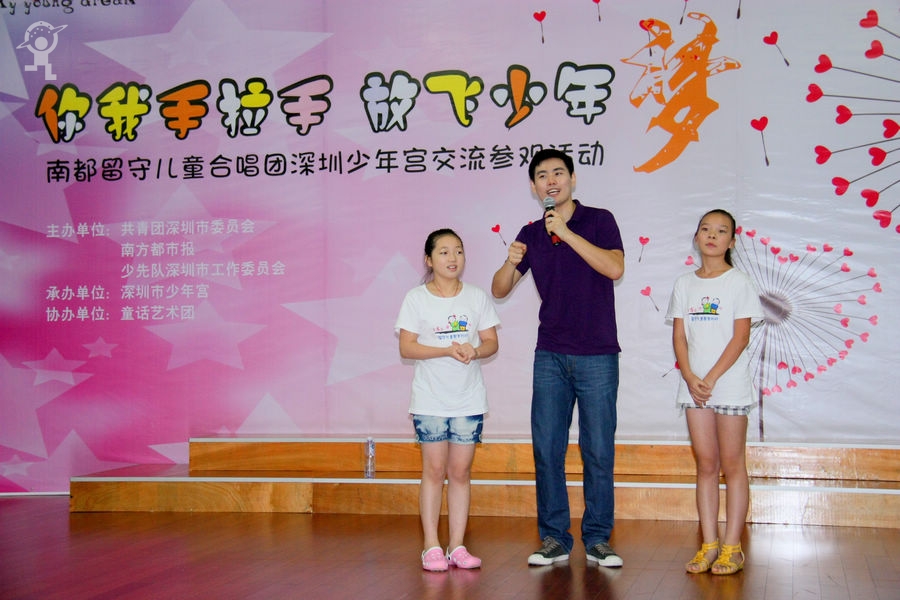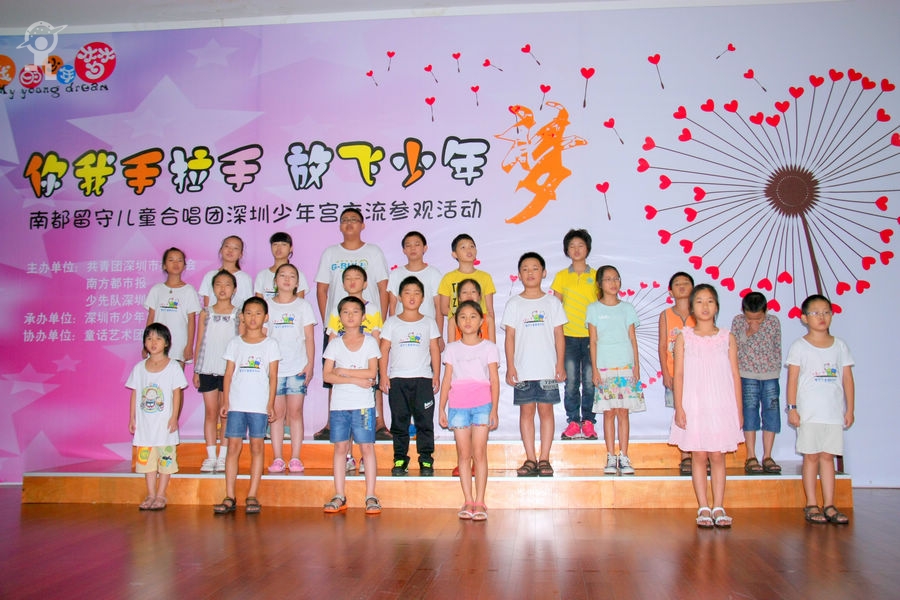 在2013年第五届南都留守儿童“圆梦行动”即将圆满落幕之际,昨日,共青团深圳市委、深圳市少工委联合南方都市报共同举办“圆梦行动”之“你我手拉手放飞少年梦”活动,邀请到第二届南都留守儿童合唱团35名成员走进少年宫,首次与深圳的孩子一起同台交流,缔结友谊。