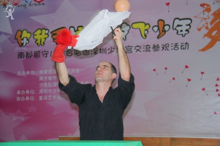 当天,市少年宫还邀请到了阿根廷的传统木偶表演艺术家奥玛-阿尔瓦雷斯先生,现场跟孩子们表演《滑稽的木偶》。