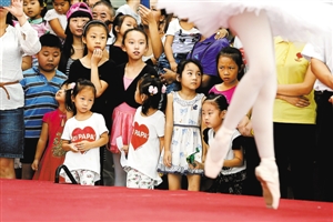 小朋友们沉浸在英国老师演出的现代芭蕾表演中