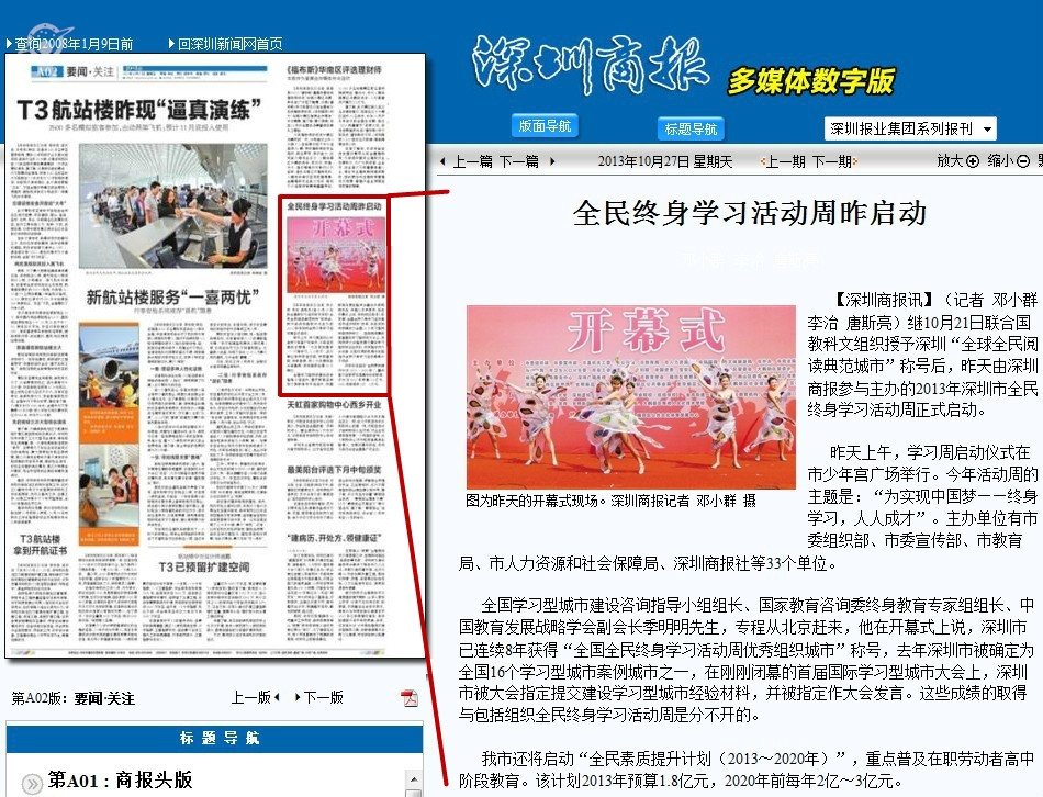 全国学习型城市建设咨询指导小组组长、国家教育咨询委终身教育专家组组长、中国教育发展战略学会副会长季明明先生,专程从北京赶来,他在开幕式上说,深圳市已连续8年获得“全国全民终身学习活动周优秀组织城市”称号,去年深圳市被确定为全国16个学习型城市案例城市之一,在刚刚闭幕的首届国际学习型城市大会上,深圳市被大会指定提交建设学习型城市经验材料,并被指定作大会发言。这些成绩的取得与包括组织全民终身学习活动周是分不开的。