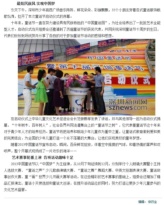 〖深圳新闻网〗首届中国童话节暨第十届深圳童话节揭幕