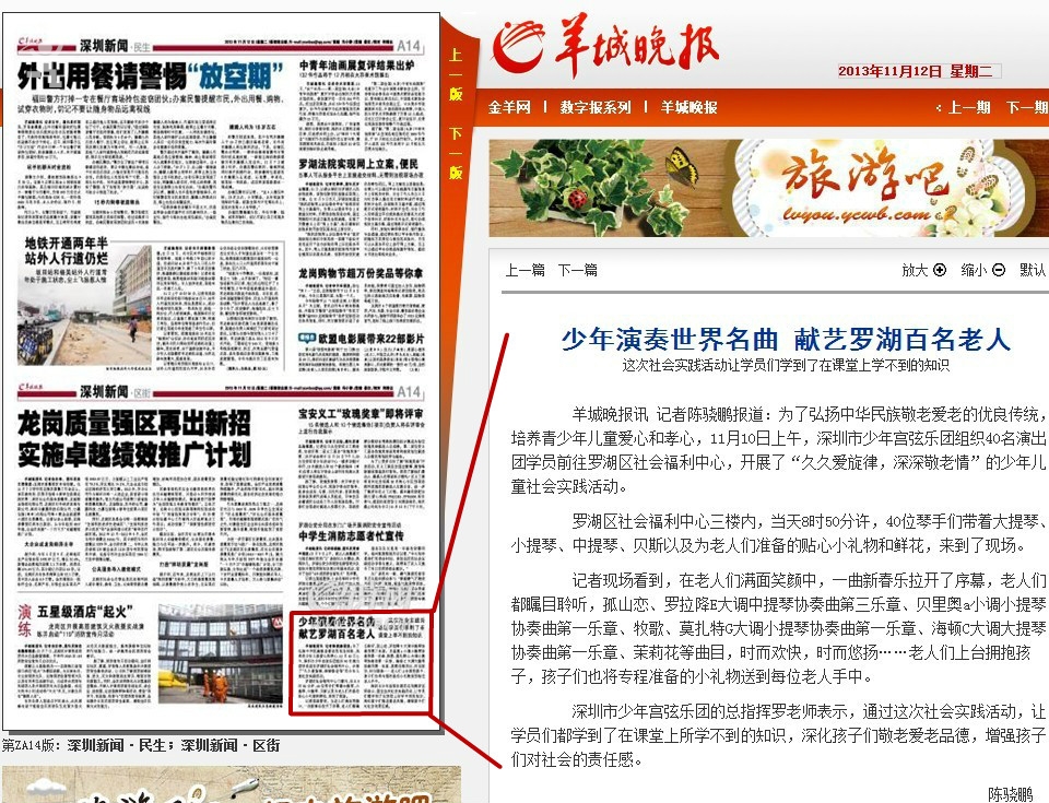 〖羊城晚报〗少年演奏世界名曲 献艺罗湖百名老人