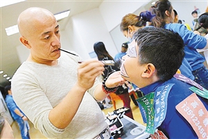 昨天,大型公益童话剧《分类时代》在深圳少年宫上演。图为小演员们在化妆。深圳商报记者 廖万育 廖齐梅 摄