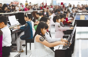 晶报讯(记者 张清华 实习生 詹雯/文 张定平/图)50架立式钢琴、1架施坦威三角钢琴,100名琴童,如此浩大阵容出现在市少年宫水石大厅。昨日下午,由郎朗国际基金等单位主办、福田区宣传文体发展资金资助的大型公益活动“开启音乐梦想、郎朗与百名琴童合奏音乐会”在这里隆重上演。