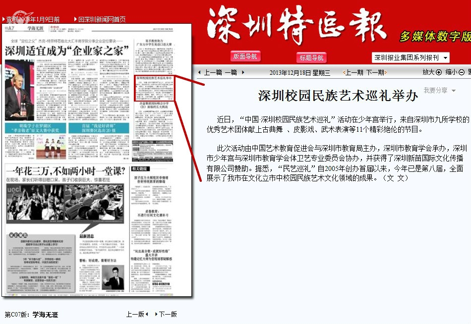 〖深圳特区报〗深圳校园民族艺术巡礼举办