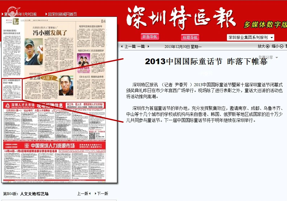 〖深圳特区报〗2013中国国际童话节昨落下帷幕