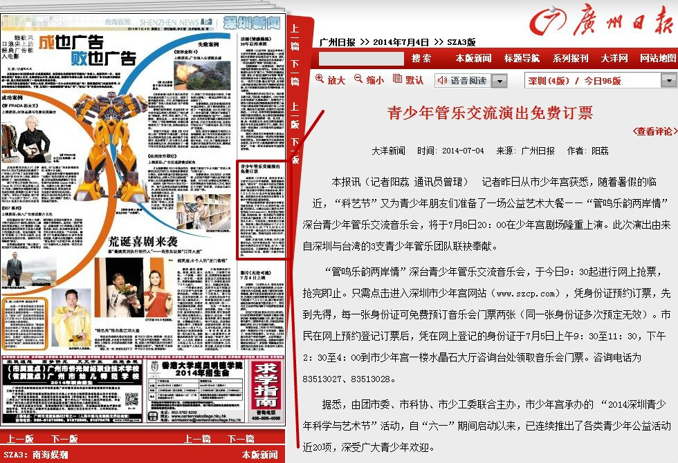 〖广州日报〗青少年管乐交流演出免费订票