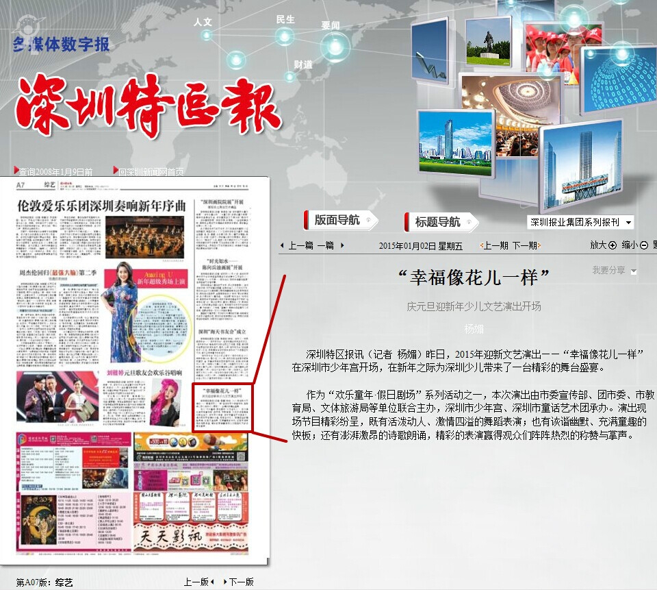 〖深圳特区报〗“幸福像花儿一样”庆元旦迎新年少儿文艺演出开场