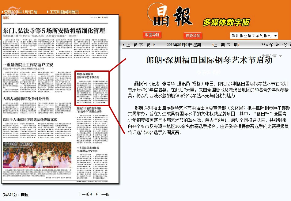 〖晶报〗郎朗·深圳福田国际钢琴艺术节启动