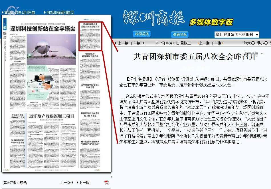 会议以短片形式生动地回顾了深圳共青团2014年的亮点工作。此外,本次全会中还增加了深圳共青团基层创新优秀案例交流环节,深圳海关打造网络新媒体工作品牌,将“深青小筑”建成联系服务青年的“移动家园”;前海深港青年梦工场因创新而生,正建设成有国际影响力的青年创新创业中心;龙华中心小学少先队辅导员带头人工作室坚持文化引领,在少年儿童中培育和践行社会主义核心价值观;“大爱福田”涉罪未成年人帮教项目整合社会化专业力量,帮助涉罪未成年人回归正途、健康成长;盐田依托一套机制、一个平台、一批岗位等“三个一”,在志愿服务岗位化上进行了有益探索;南山少年创新院“小所长”朱叙昌作为代表展示南山少年创新院以青少年学生为重点,积极探索共青团培育青少年创新创意的载体和路径。