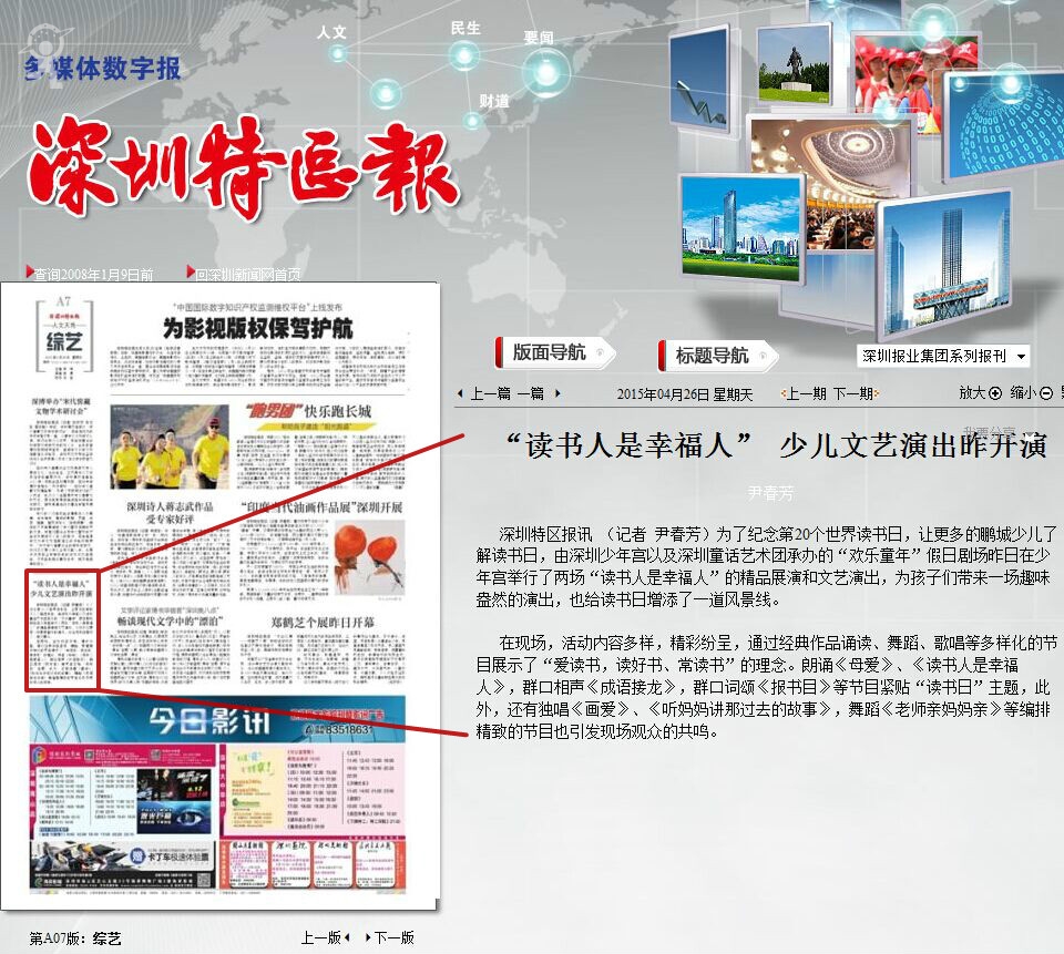 〖深圳特区报〗“读书人是幸福人”少儿文艺演出昨开演