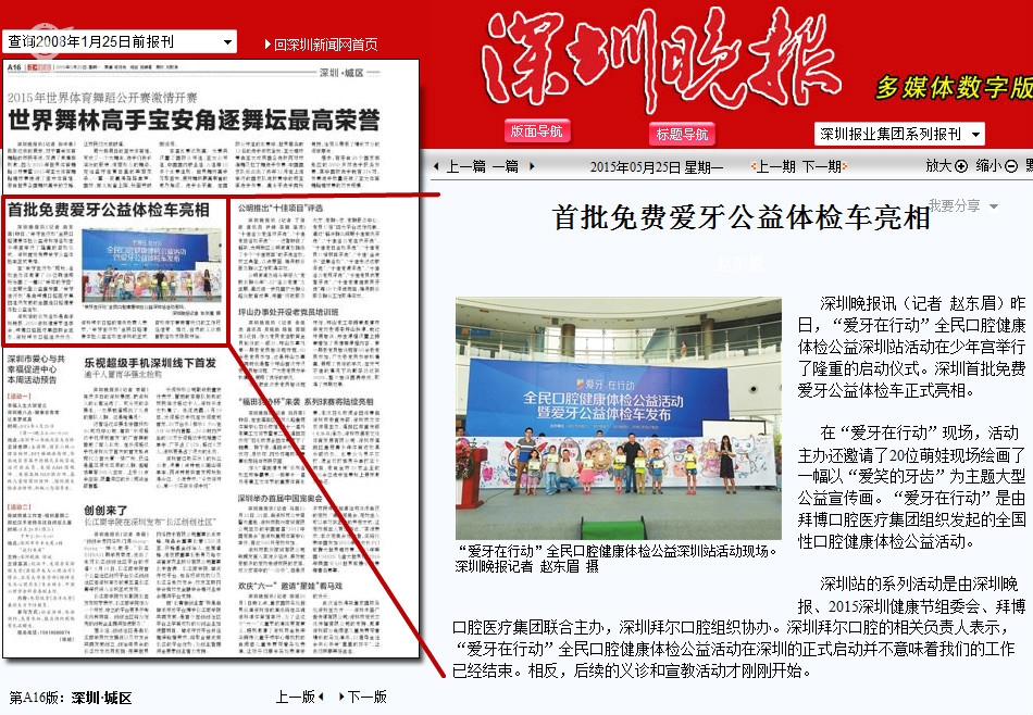 〖深圳晚报〗首批免费爱牙公益体检车亮相