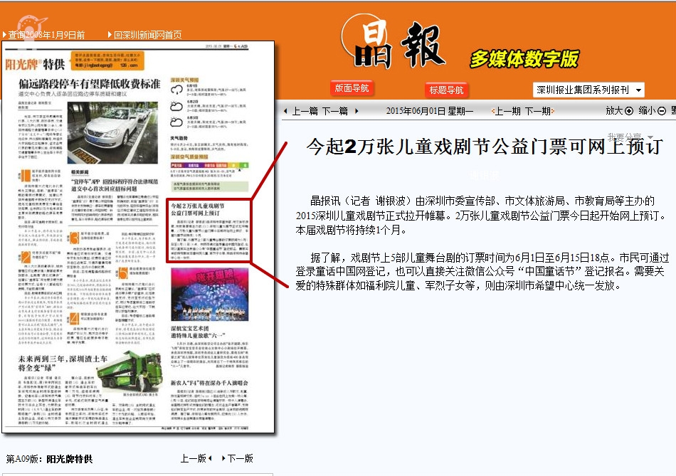 〖晶报〗今起2万张儿童戏剧节公益门票可网上预订