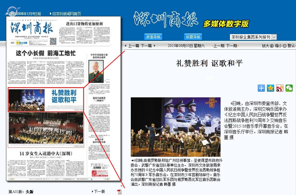 〖深圳商报〗礼赞胜利 讴歌和平