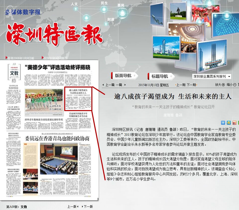 〖深圳特区报〗逾八成孩子渴望成为生活和未来的主人