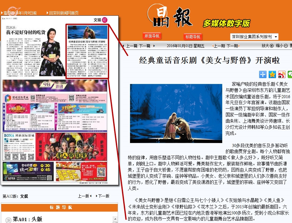 〖晶报〗经典童话音乐剧《美女与野兽》开演啦