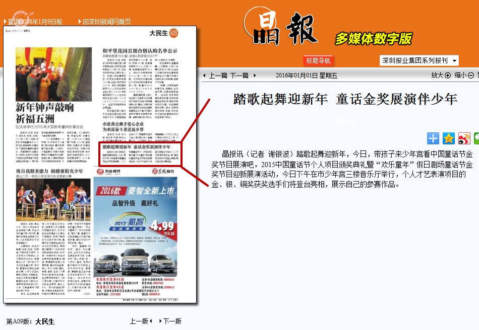 〖晶报〗踏歌起舞迎新年 童话金奖展演伴少年