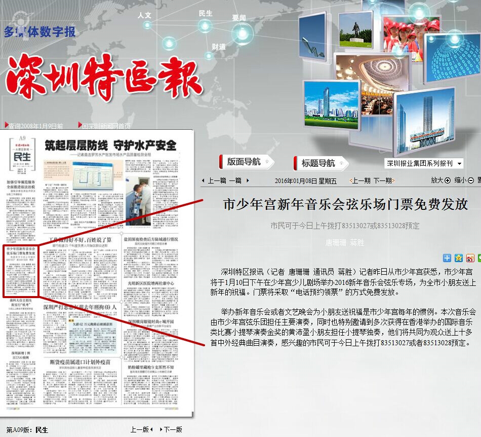 〖深圳特区报〗市少年宫新年音乐会弦乐场门票免费发放