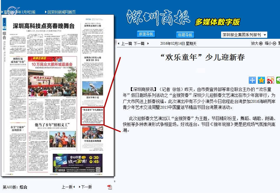 〖深圳商报〗“欢乐童年”少儿迎新春