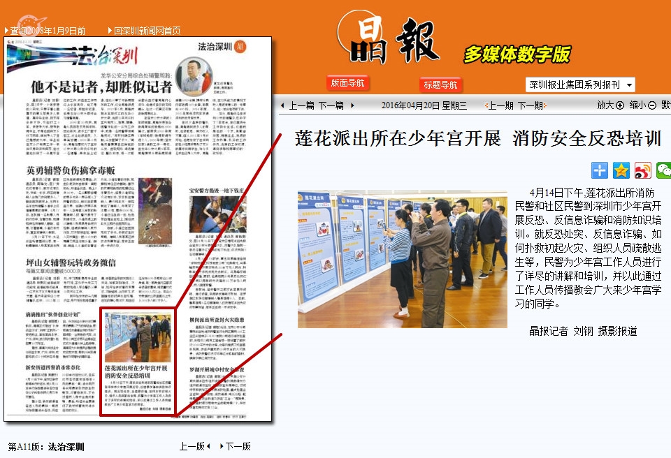4月14日下午,莲花派出所消防民警和社区民警到深圳市少年宫开展反恐、反信息诈骗和消防知识培训。就反恐处突、反信息诈骗、如何扑救初起火灾、组织人员疏散逃生等,民警为少年宫工作人员进行了详尽的讲解和培训,并以此通过工作人员传播教会广大来少年宫学习的同学。