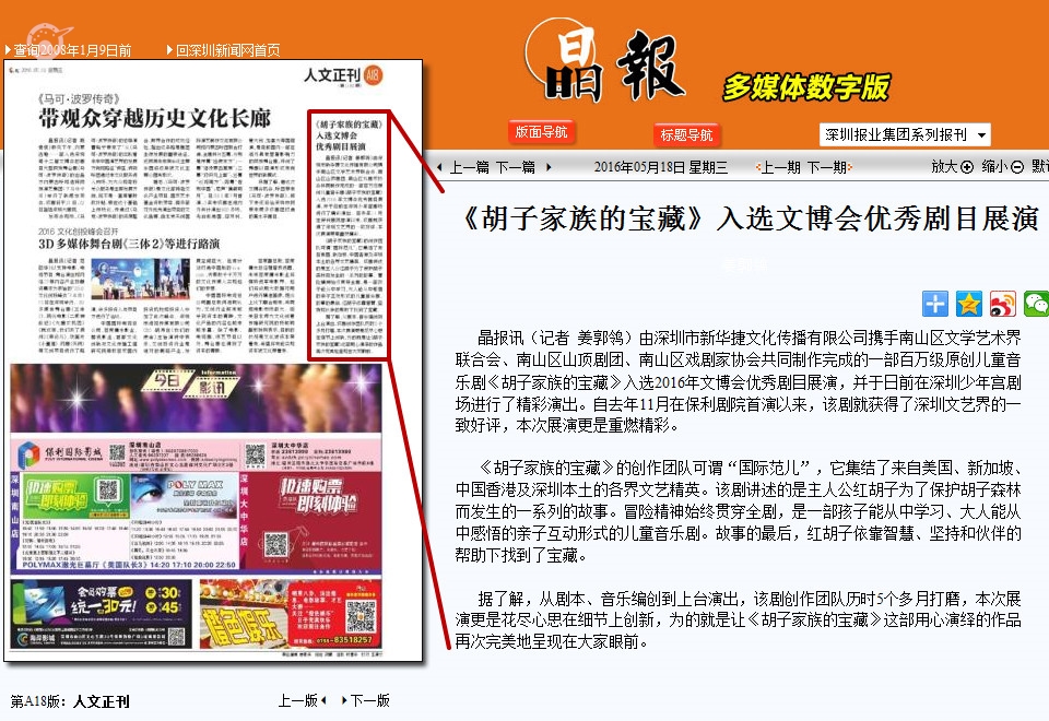 〖晶报〗《胡子家族的宝藏》入选文博会优秀剧目展演