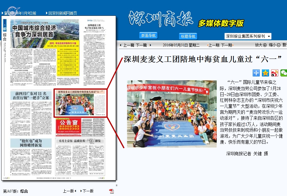 〖深圳商报〗深圳麦麦义工团陪地中海贫血儿童过“六一”
