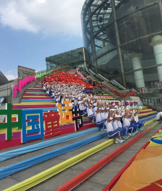 在开幕式现场,伴随着激昂的音乐,由500名少年儿童组成的人型火炬造型矗立在舞台阶梯的中央,身穿红色T恤、头戴红帽的孩子们挥舞着红色的长扇,犹如跳动的火焰瞬间点燃全场的热情,也将本届童话节开幕式推向了高潮,标志着2016中国童话节的盛大开启,各项活动也将陆续开展。