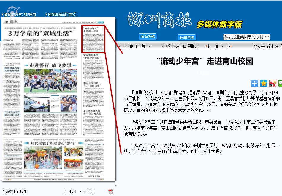 〖深圳商报〗“流动少年宫”走进南山校园