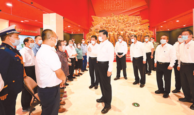 7月12日至15日,中共中央总书记、国家主席、中央军委主席习近平在新疆考察。这是13日下午,习近平在新疆生产建设兵团八师石河子市新疆兵团军垦博物馆,会见兵团老中青三代建设者代表。