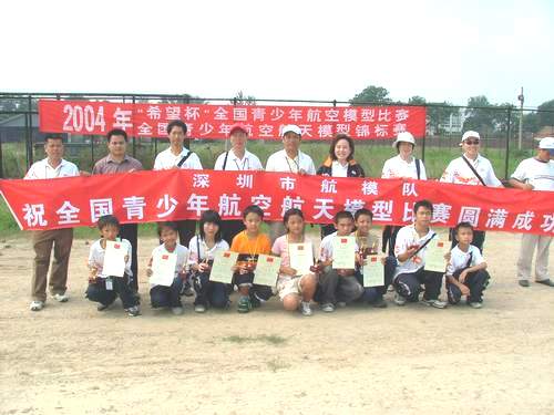 七月流火,我市航模选手在深圳市少年宫领队老师的带领下,前往郑州参加由国家体育总局、教育部、中国科协、共青团中央、全国妇联联合主办的,2004年“希望杯”全国青少年航空航天模型比赛暨全国青少年航空航天模型锦标赛。经过挥汗如雨的艰苦训练,在全国来自24个省市49支队伍300多名选手的激烈角逐中,我市选手们成绩斐然,勇夺八金六银,为鹏城载誉而归。作为少年宫自6月1日成立以来所参与组织的第一次全国性比赛,能取得如此骄人的成绩,实在让鹏城儿女自豪、振奋!